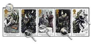 В 1993 году почта Великобритании выпустила набор из пяти марок в честь легендарного Шерлока Холмса. Их пять, потому что на каждом из рисунков спрятано по одной букве фамилии автора - сэра Артура Игнатиуса Конан Дойля - DOYLE. Нужно найти все пять (изображение кликабельно). Прежде чем смотреть в ответы советую все-таки попробывать найти буквы, они ведь на самом виду.